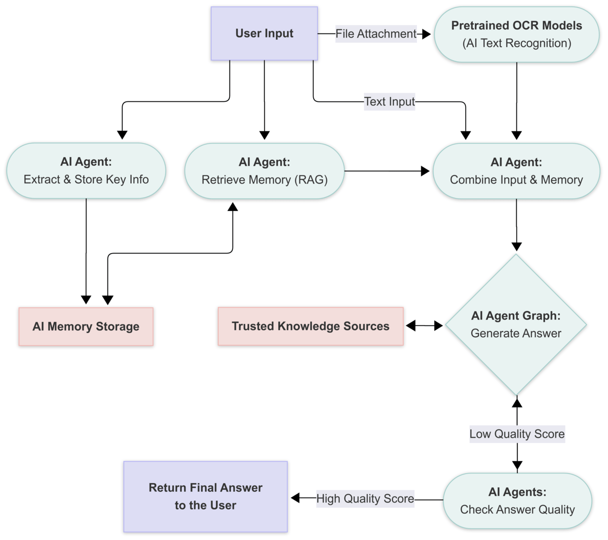 When needed, the system retrieves relevant details from your personal memory, like past symptoms, lab results, or important health notes. With this context, the AI can give you answers that are more accurate, complete, and personal.